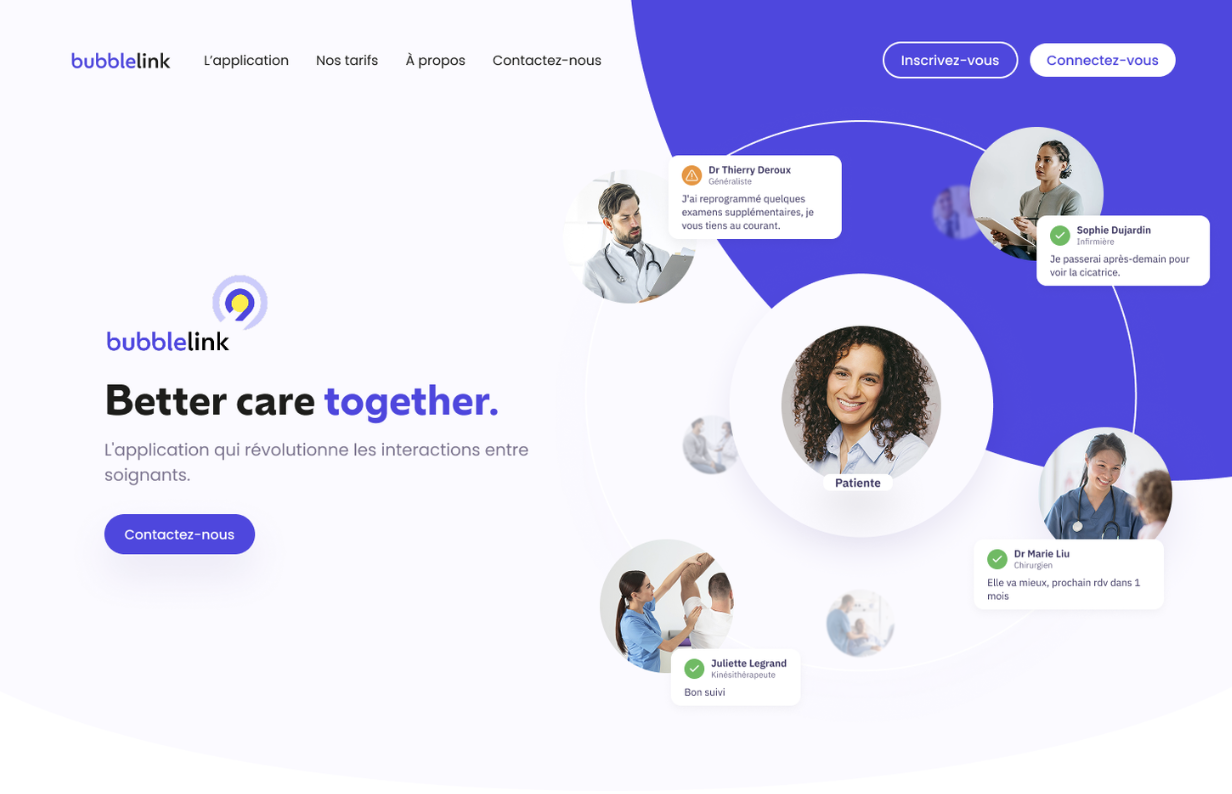 Bagoolab a accompagné Bubblelink dans la structuration et la refonte de son identité digitale, en concevant un site web vitrine dédié à une solution health-tech orientée expérience patient et innovation médicale. Le travail s’est concentré sur la clarté du message, la hiérarchisation de l’information et une expérience utilisateur fluide, adaptée aux attentes des professionnels de santé et des institutions.
